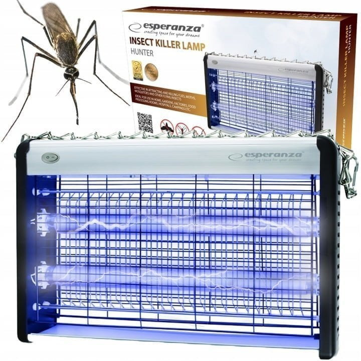 Esperanza EXTERMINATOR insect killer lamp effectively attracts flying insects such as flies, moths, mosquitoes, and other pests, efficiently eliminating them without the use of chemicals or aerosols. It emits no odors and is safe for both humans and pets. This product is ideal for use in homes, gardens, or offices.