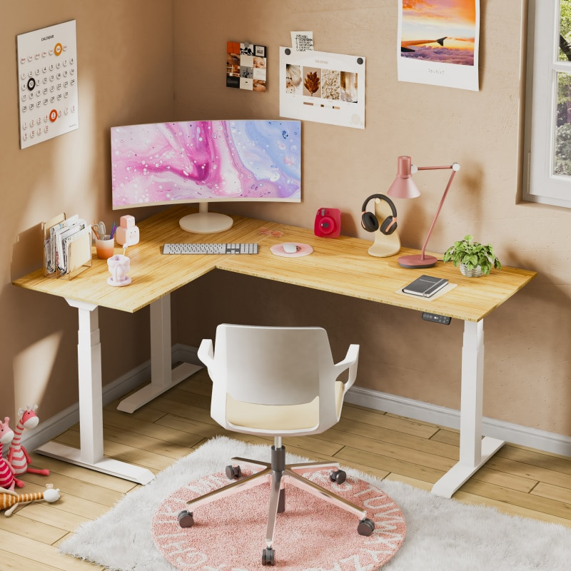FLEXISPOT E7L L-alakú hárommotoros állítható íróasztal, fekete, 150 kg teherbírás, 63,5–128,5 cm magasságállítás, Jobb- és balkezes kialakításhoz is