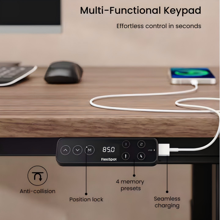 FLEXISPOT E7Q négylábú elektromos magasságállítható íróasztal láb, Fekete, 4 motorral, 300 kg teherbírással