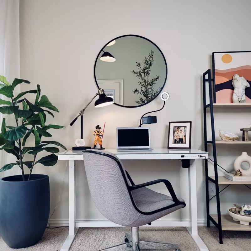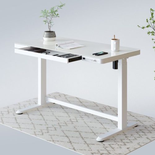 Comhar Glass All-in-One elektromos állítható íróasztal fiókkal, üveg asztallap, Fehér, 120x60cm USB-töltővel és memória panellel
