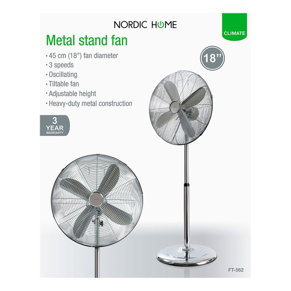A NORDIC HOME FT-562 fém állóventilátor ideális választás azok számára, akik hatékony és megbízható légmozgást keresnek otthonukban vagy irodájukban. A készülék 45 cm-es átmérőjű fém lapátokkal és 60 W-os teljesítménnyel rendelkezik, biztosítva a kellemes hűvös levegőt a forró nyári napokon.