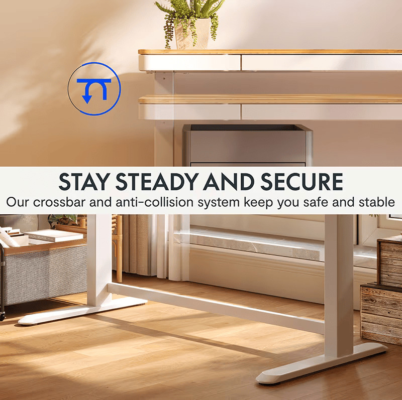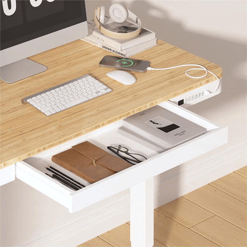 FlexiSpot Comhar All-in-One elektromos állítható íróasztal fiókkal, Jufar, 120x60cm USB-töltővel és memória panellel