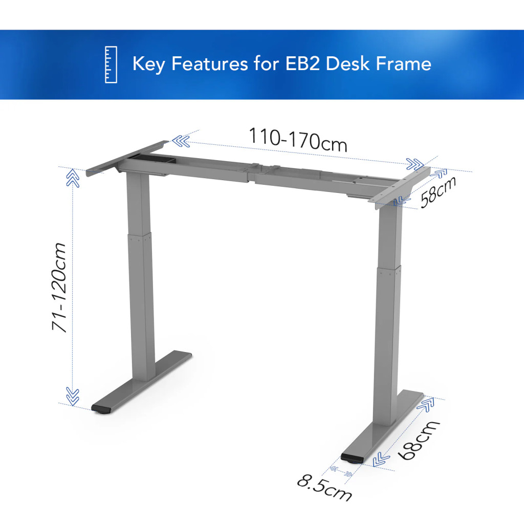 FLEXISPOT E2 Elektromos Íróasztal Láb, Fekete, 71-120 Cm Állítható, Kétmotoros, 100 kg Teherbírás, Memóriagombokkal, Otthonra, Irodába